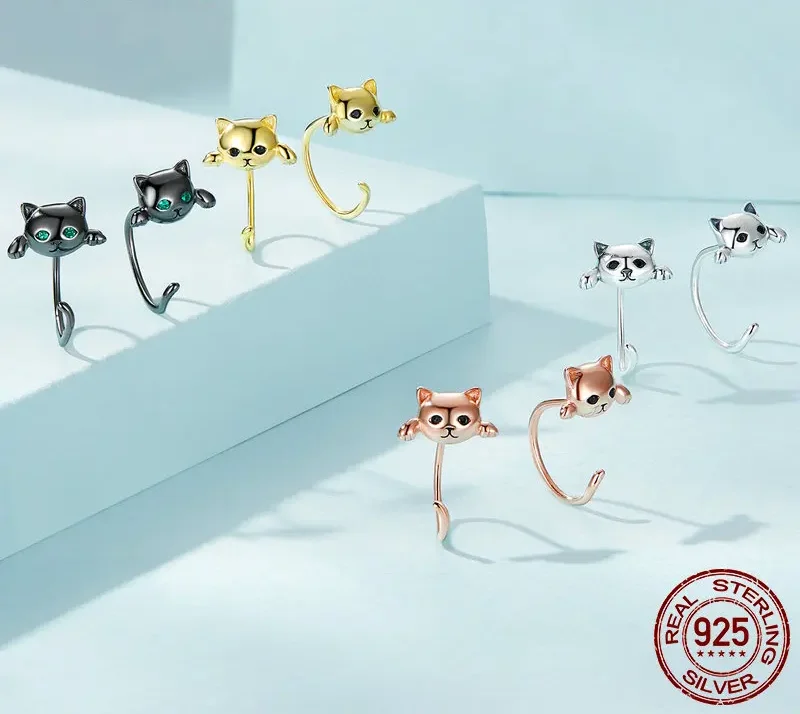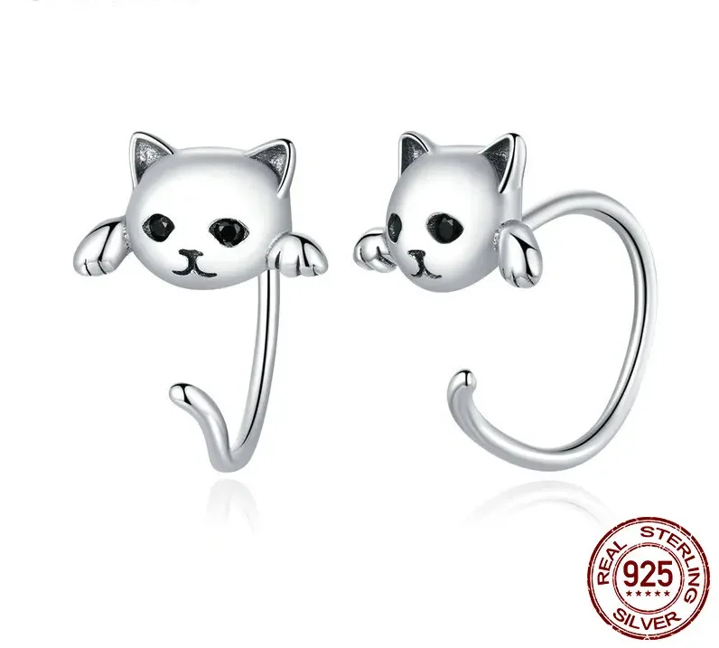 Minimalist Cute Cat Tail Stud Earrings – S925 Sterling Silver