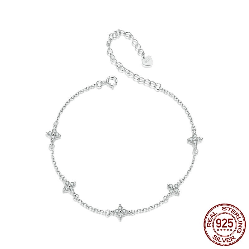 Sterling Silver CZ Clover Anklet – Dainty 925 Silver Adjustable Foot Jewelry (22-26cm / 8.7″-10.2″)